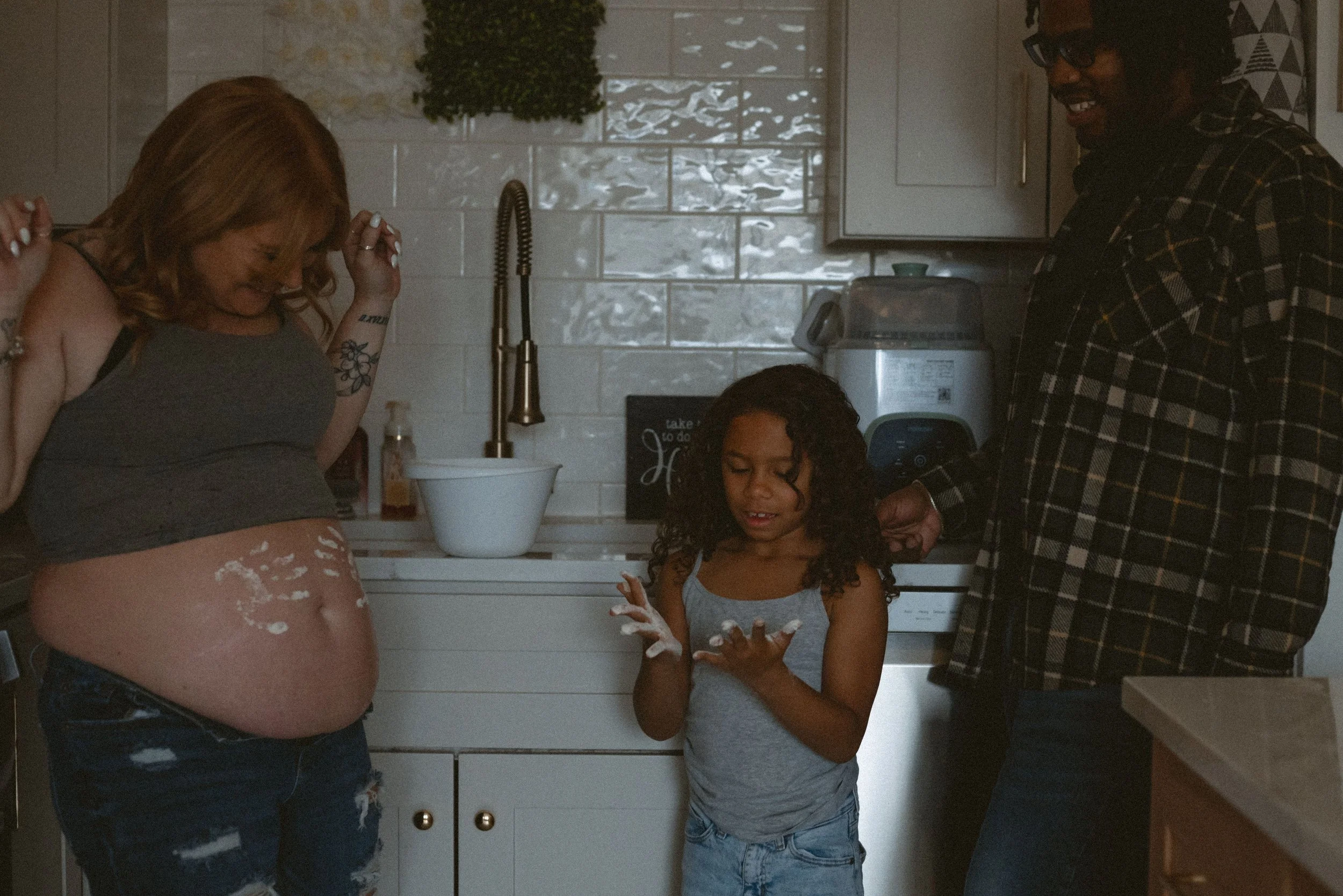 When we planned this session we had talked about which direction we wanted the session to go and they wanted it to be a mix of a few posed family photos and then candids just loving on the baby bump. We used the kitchen as a backdrop and then took the session outside. YES, outside in the winter. It was cold but so worth it! The photos are nostalgic and kind of make me feel like I found them in a 90’s photo album.